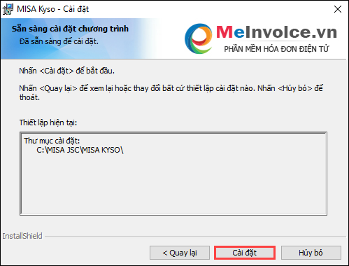 - Đường dẫn mặc định của thư mục cài đặt tại ổ C. Anh/chị có thể thay đổi nếu muốn, chọn Cài đặt.
