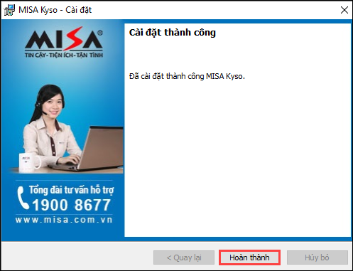- Nhấn Hoàn thành khi phần mềm hiển thị thông báo Cài đặt thành công.