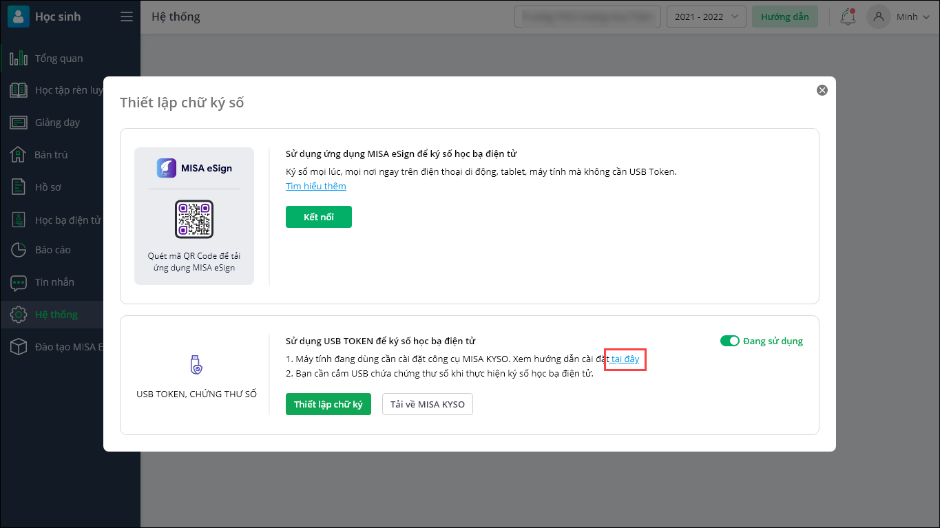 Mục đích: Giúp Giáo viên/Ban Giám hiệu nhà trường cài đặt công cụ MISA KYSO để ký số học bạ điện tử qua hình thức cắm USB Token.
