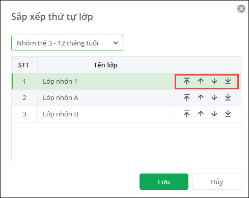 - Lựa chọn Độ tuổi/lớp cần sắp xếp thứ tự.