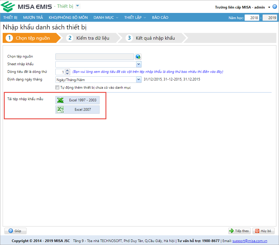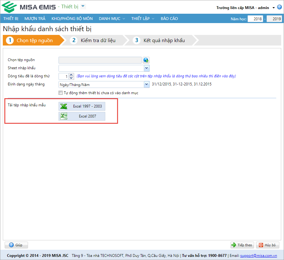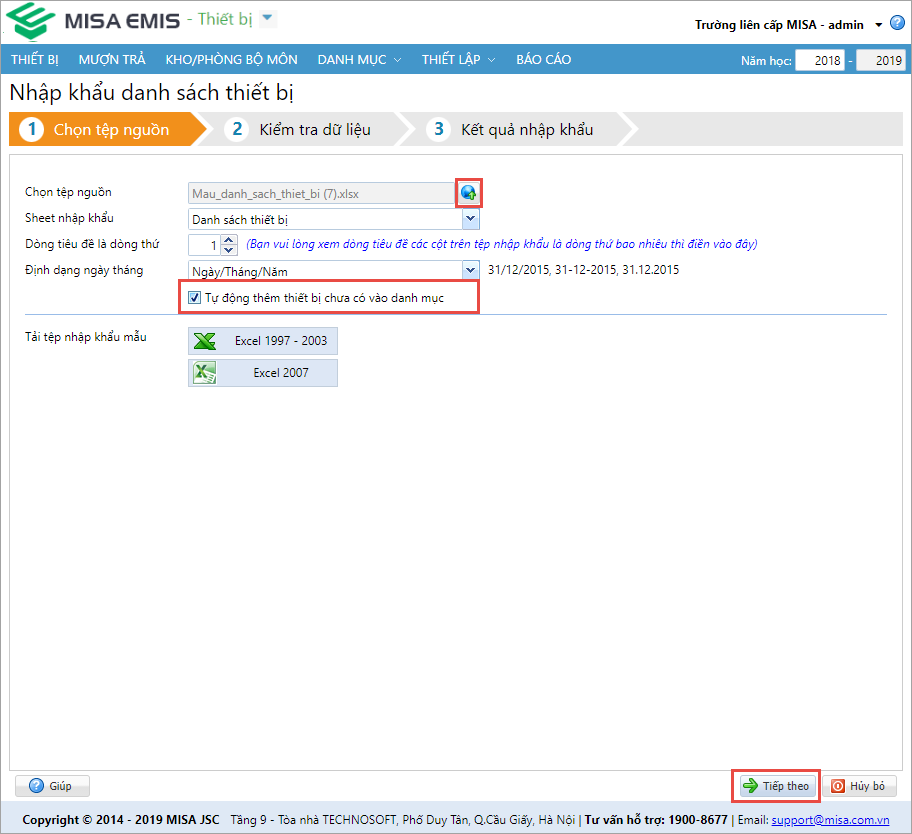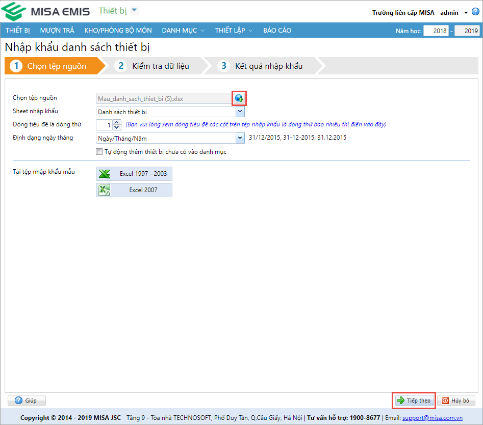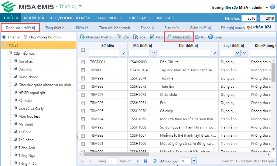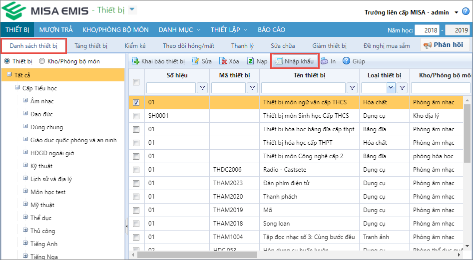 2.3. Nhập khẩu danh sách thiết bị của trường không nằm trong danh mục tối thiểu