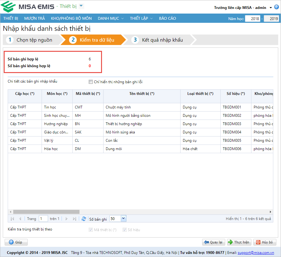6. Nhấn Tiếp theo. Phần mềm thông báo số bản ghi hợp lệ và không hợp lệ.