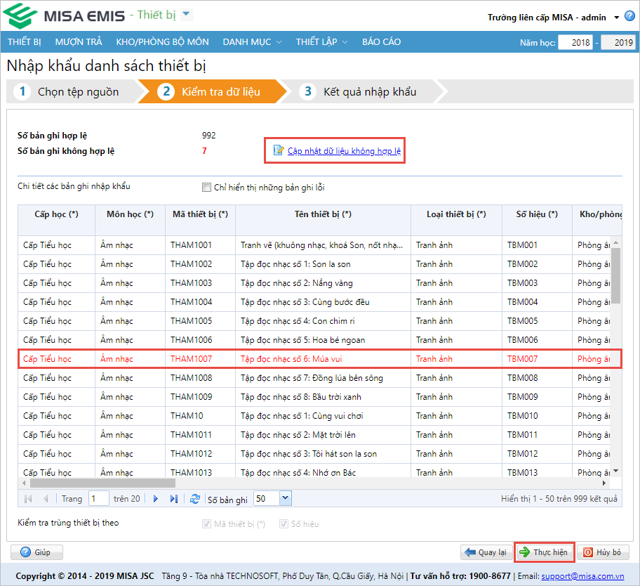 8. Nhấn Thực hiện để hệ thống nhập khẩu những thiết bị được thêm mới vào phần mềm.