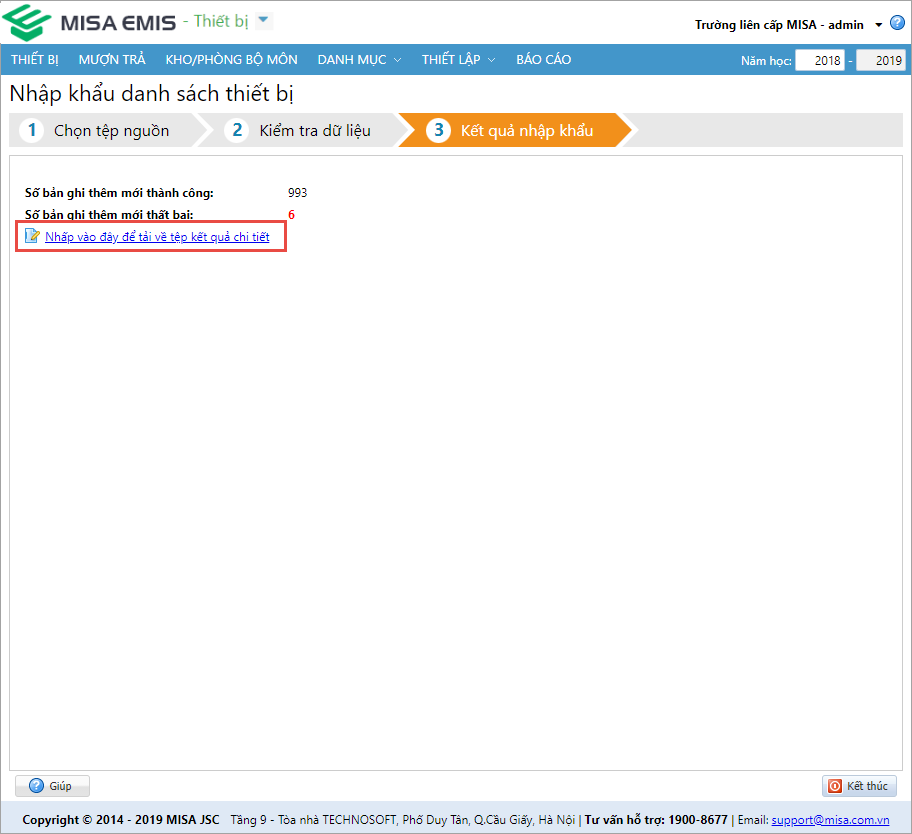 9. Phần mềm thông báo kết quả nhập khẩu. Ngoài ra, có thể nhấn Nhấp vào đây để tải về tệp kết quả chi tiết để xem nguyên nhân nhập khẩu thành công hoặc không thành công.
