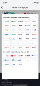 - Phụ huynh mong muốn theo dõi được danh sách ngân hàng chấp nhận quét mã JETPAY QR để lựa chọn hình thức thanh toán phù hợp với ngân hàng đang sử dụng.