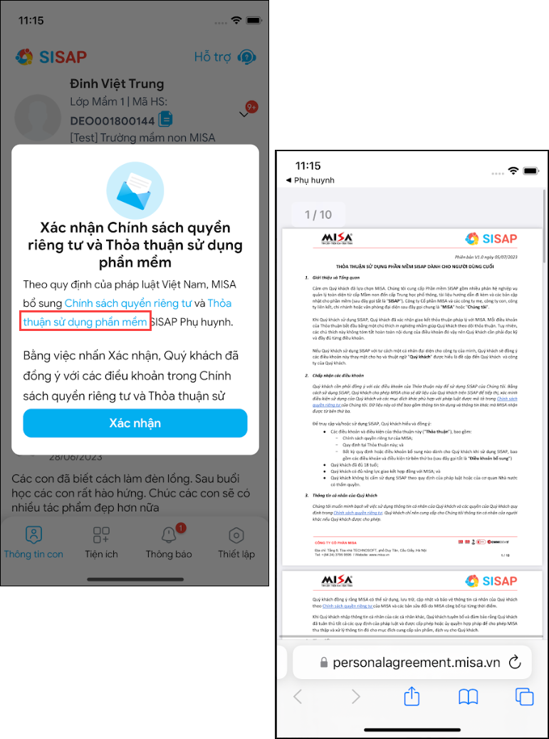 1. Mỗi người dùng cuối của MISA SISAP mong muốn biết và xác nhận Thỏa thuận sử dụng dịch vụ và chính sách xác nhận quyền riêng tư theo Nghị định 13/2023/NĐ-CP