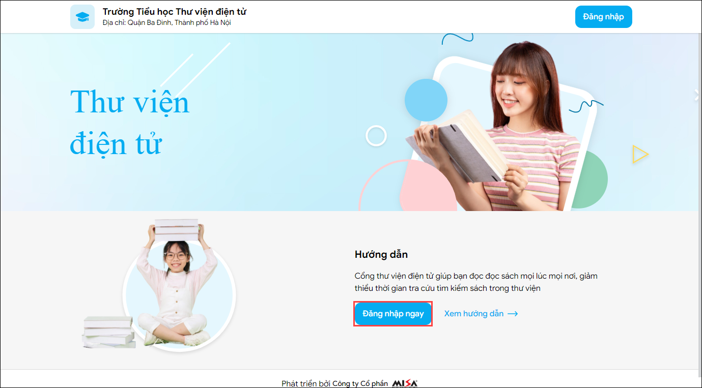 1. Truy cập đường dẫn vào Cổng thư viện điện tử nhà trường. Nhấn Đăng nhập.