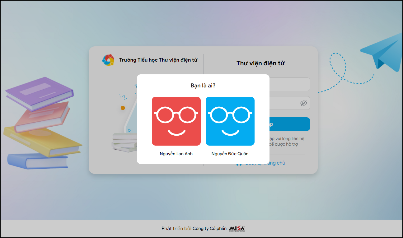 4. Trường hợp tài khoản bạn đọc dùng số điện thoại của Phụ huynh để đăng ký cho cả hai con sử dụng Cổng thư viện điện tử. Sau khi đăng nhập, nhấn chọn tài khoản của con để bắt đầu đọc sách.