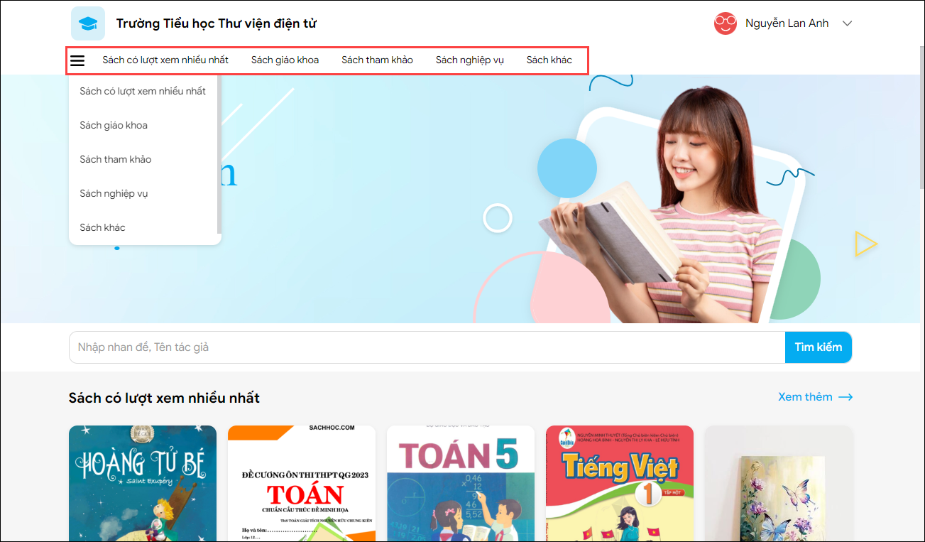 1. Sau khi đăng nhập, bạn đọc có thể truy cập vào Cổng thư viện điện tử Nhà trường để bắt đầu đọc sách trực tuyến.