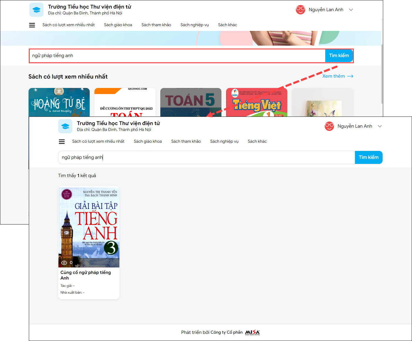 3. Nhập nhan đề, tên tác giả sách trên thanh tìm kiếm, nhấn Tìm kiếm.