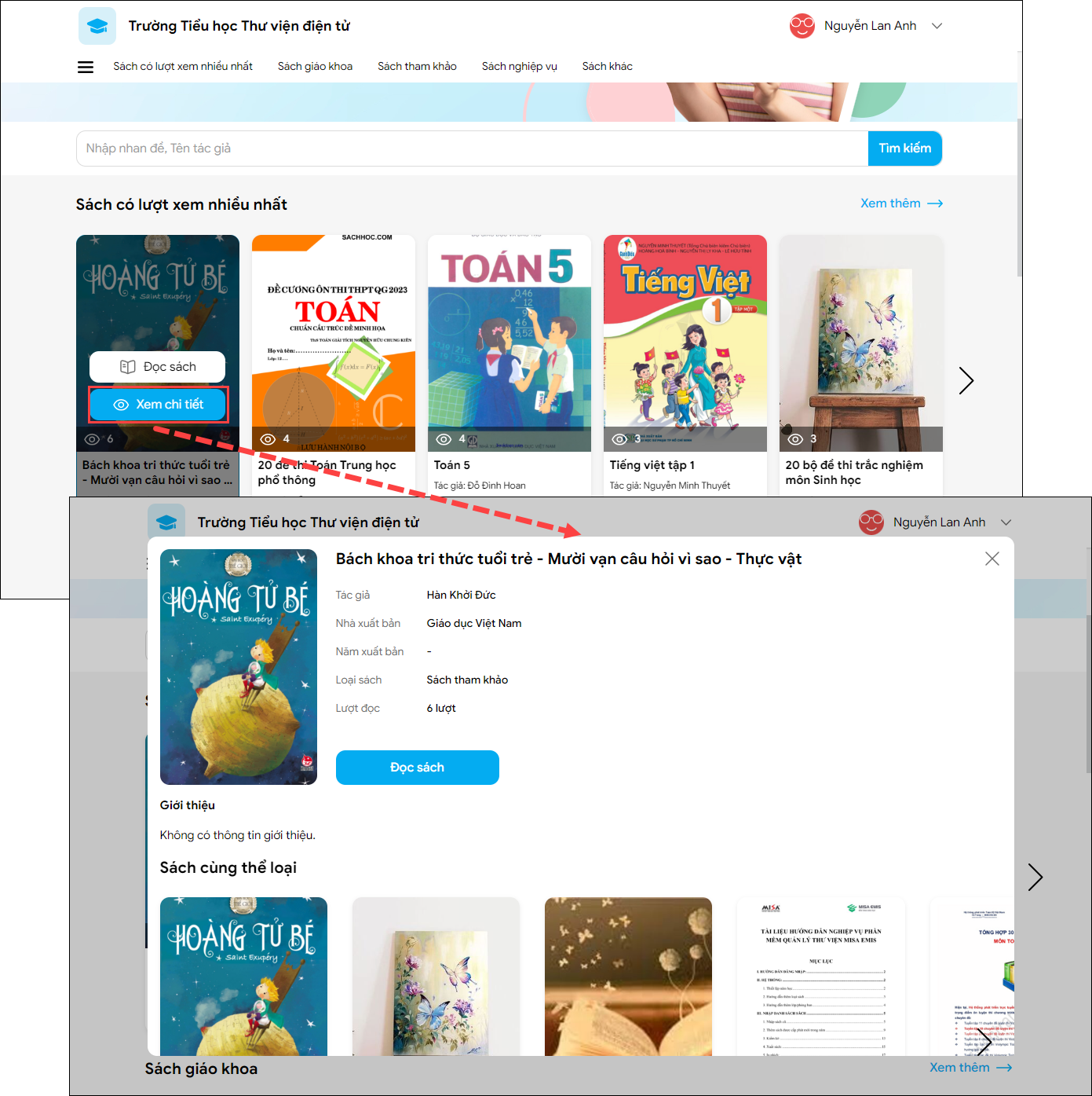 4. Để xem trước thông tin chi tiết của sách, nhấn vào sách, chọn Xem chi tiết.