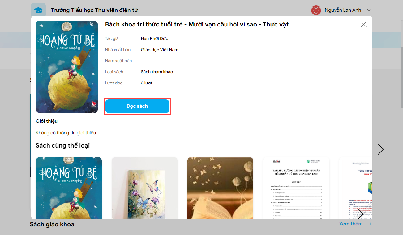 5. Nhấn Đọc sách để chuyển sang giao diện bắt đầu đọc sách.