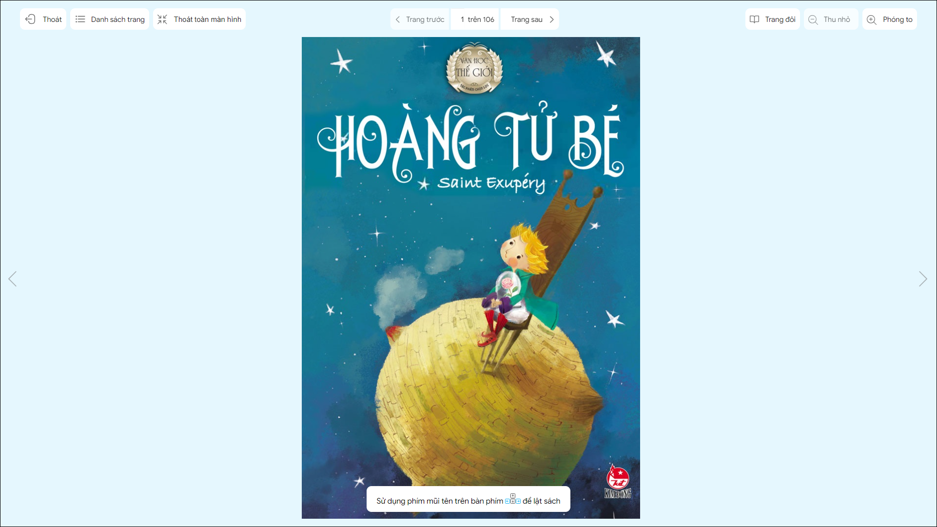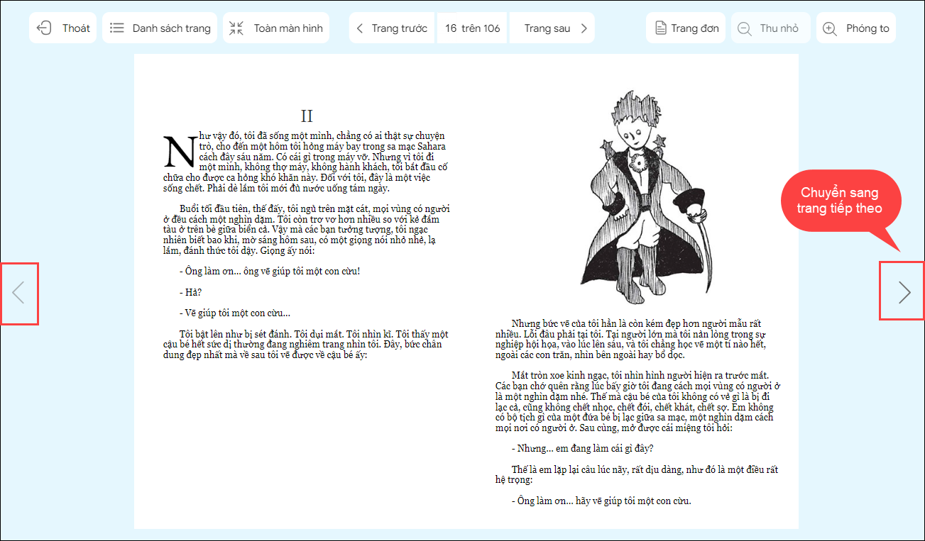 6. Giao diện đọc sách của bạn đọc, bạn đọc có thể sử dụng bàn phím dấu mũi tên để chuyển trang.