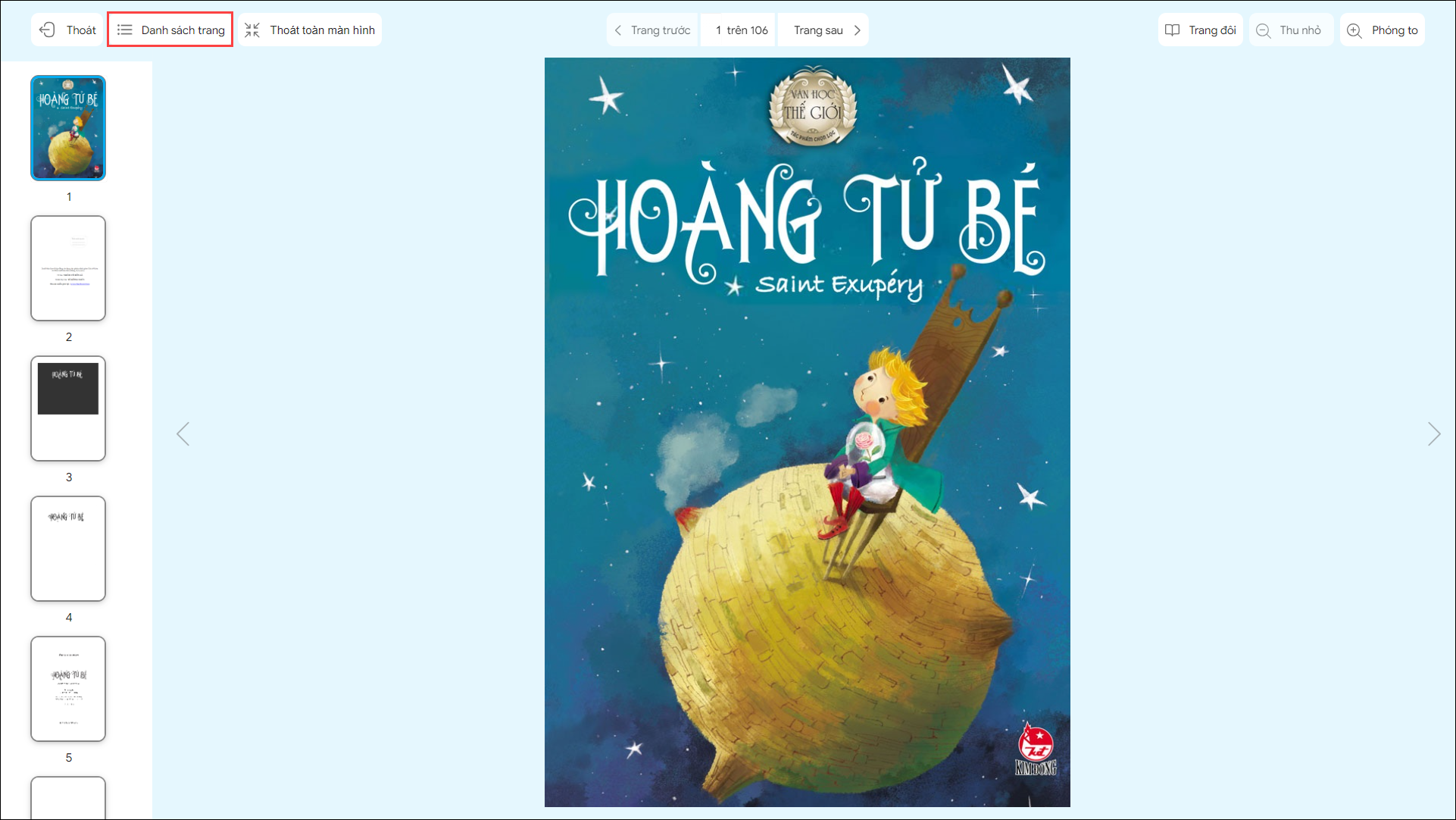 7. Để xem được danh sách trang sách và chọn nhanh trang cần đọc, nhấn Danh sách trang.