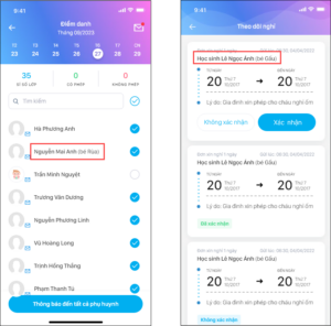 • Vai trò Hiệu trưởng có thể theo dõi Điểm danh.