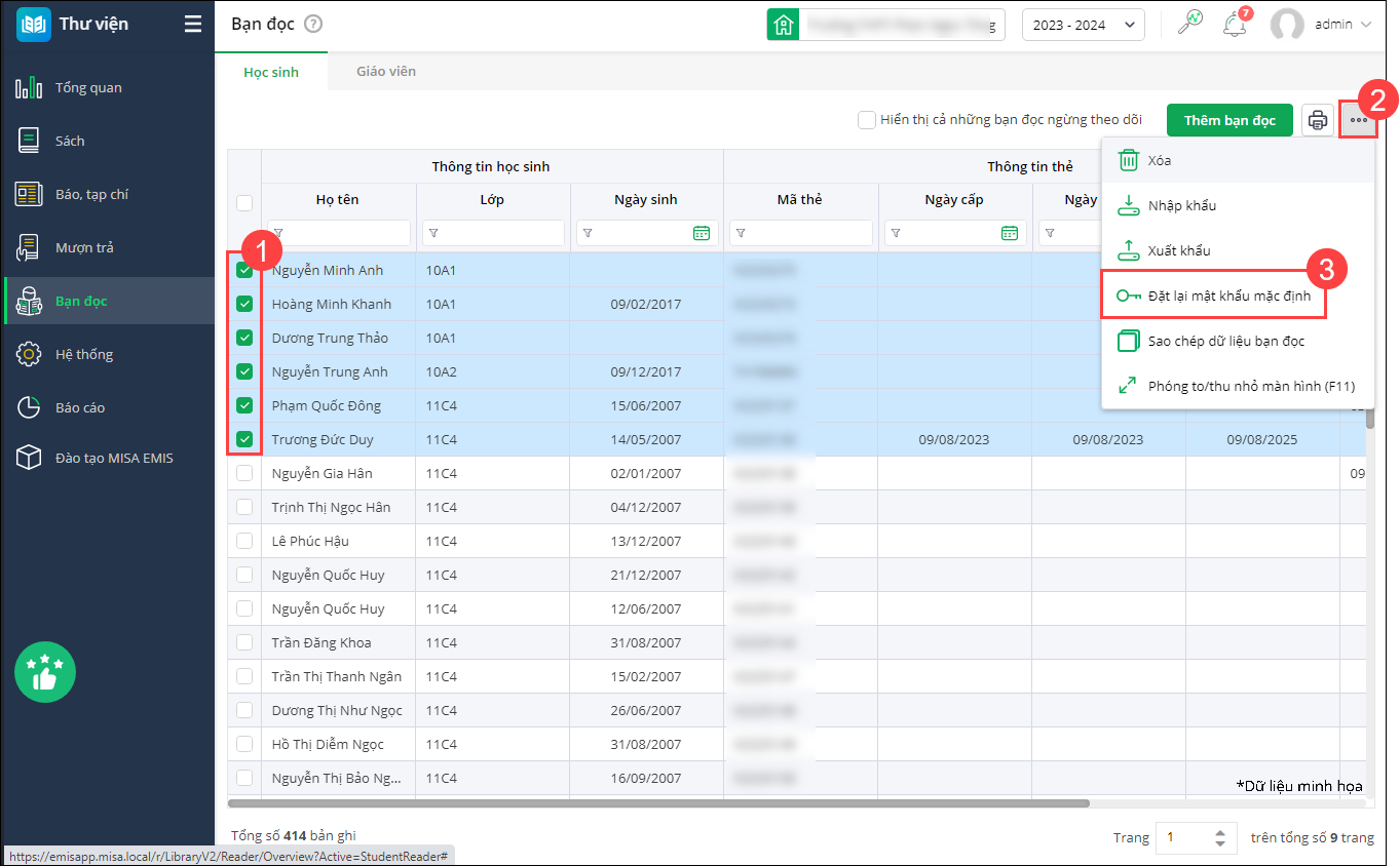 - Tại EMIS Thư viện\Bạn đọc\Danh sách tài khoản bạn đọc: