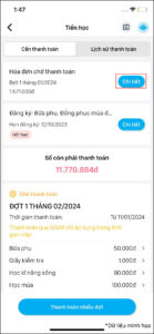 - Vào Học phí\Cần thanh toán, nhấn vào giao dịch đã thanh toán nhưng chưa thành công mà vẫn ở trạng thái Chờ thanh toán.