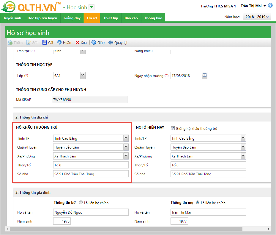 • Tại phân hệ Học sinh, vào menu Hồ sơ\Hồ sơ học sinh