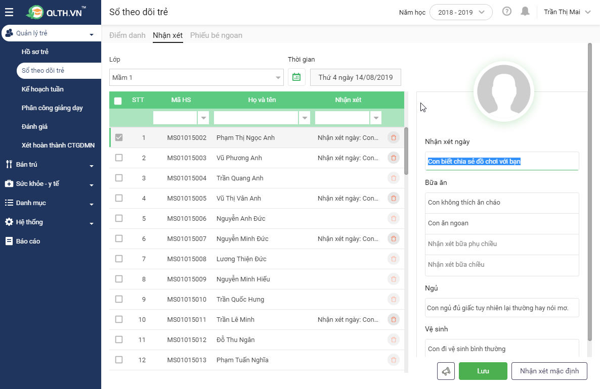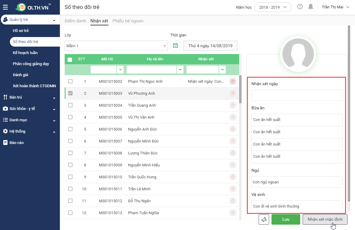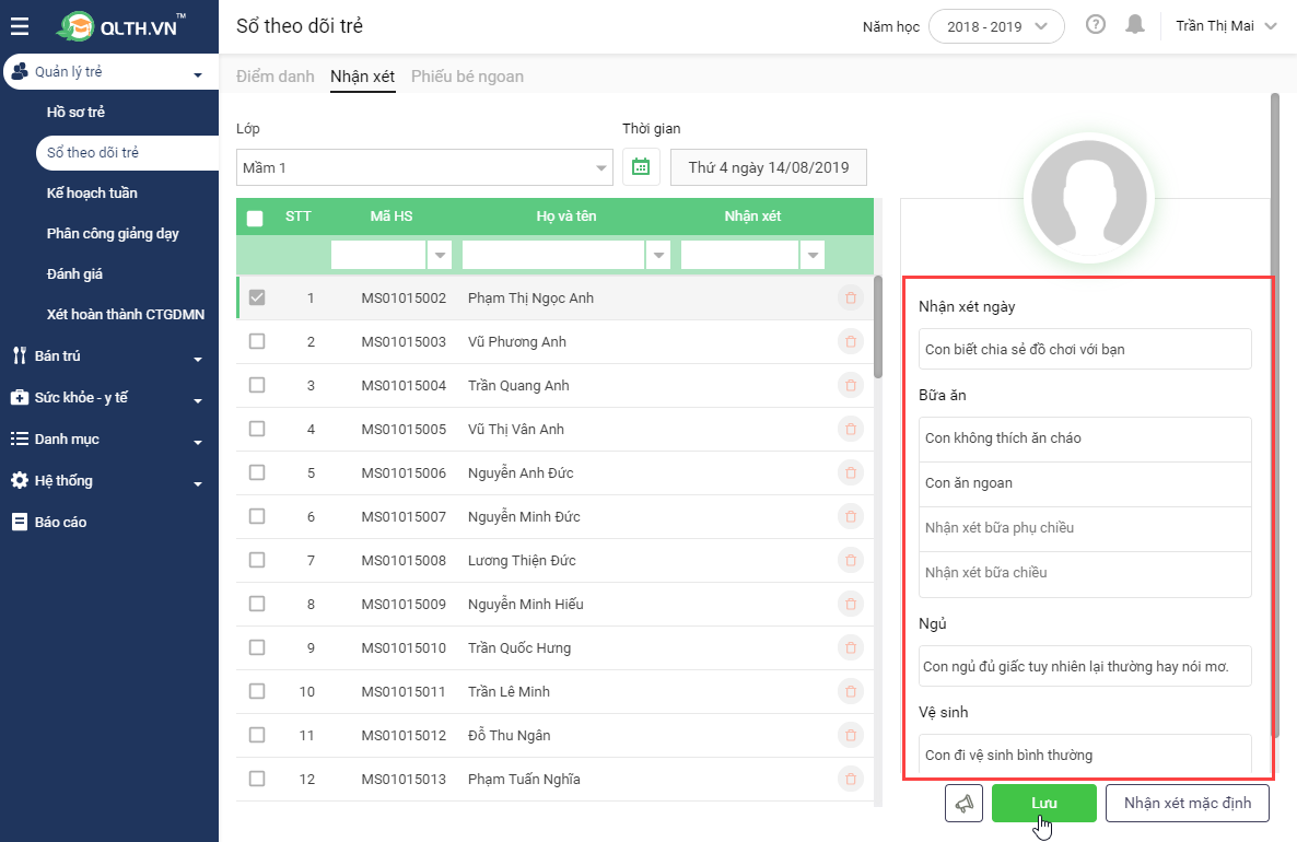 2.1 Nhập nhận xét cho từng trẻ