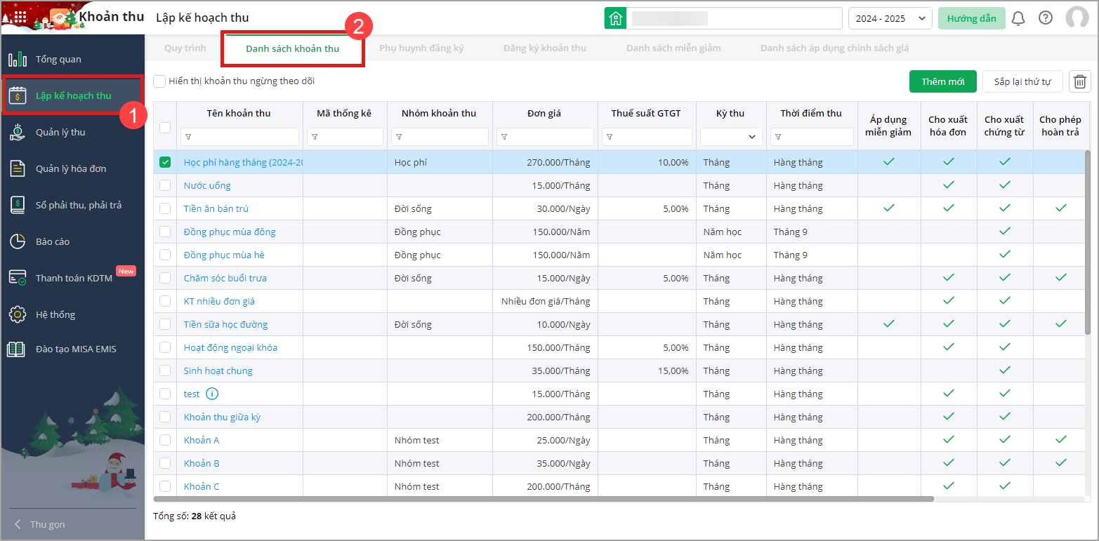 Tại menu Lập kế hoạch thu\Danh sách khoản thu: