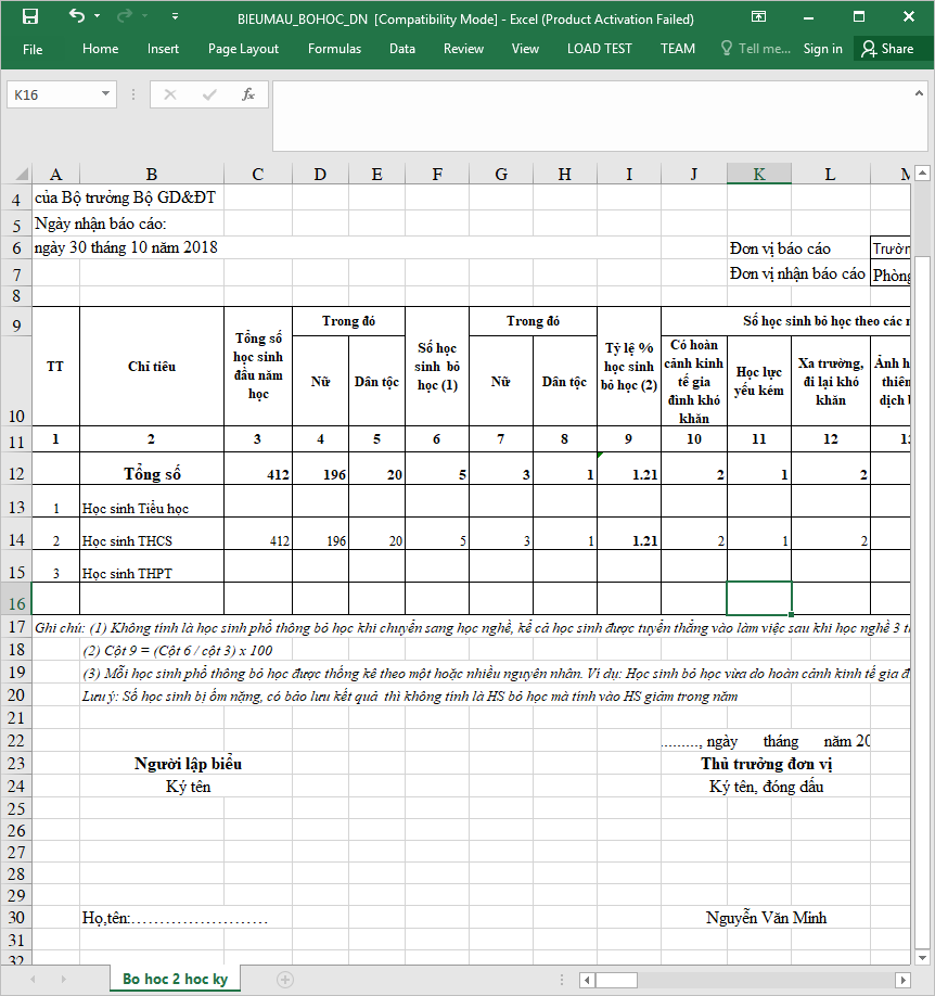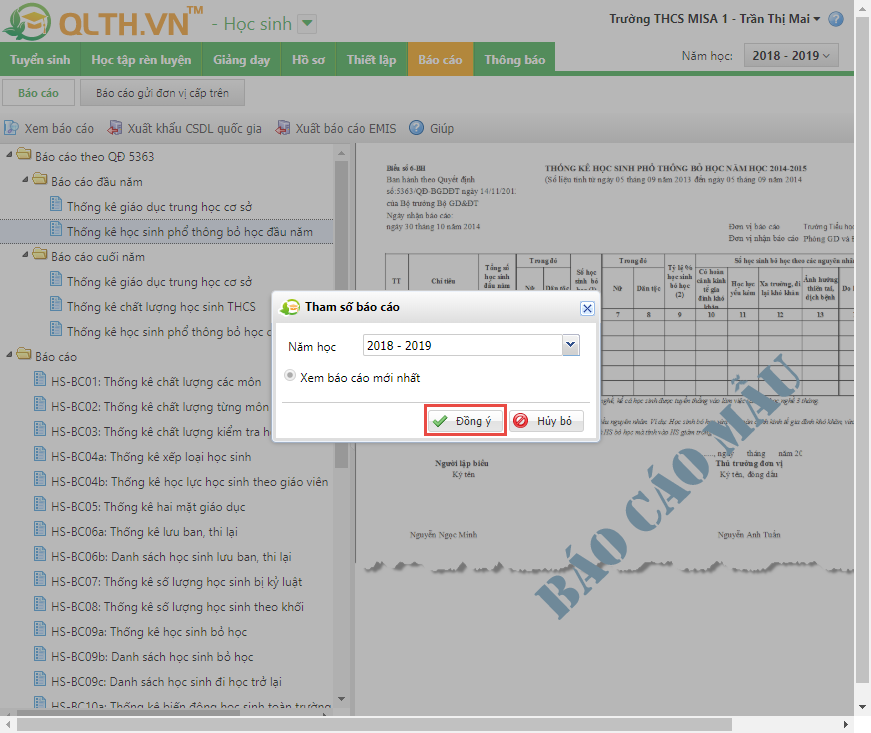 Đáp ứng mẫu báo cáo thống kê số học sinh bỏ học trong năm tại các trường. Các đơn vị trường học sau khi in báo cáo thì thực hiện nộp lên các cơ quan cấp trên.
