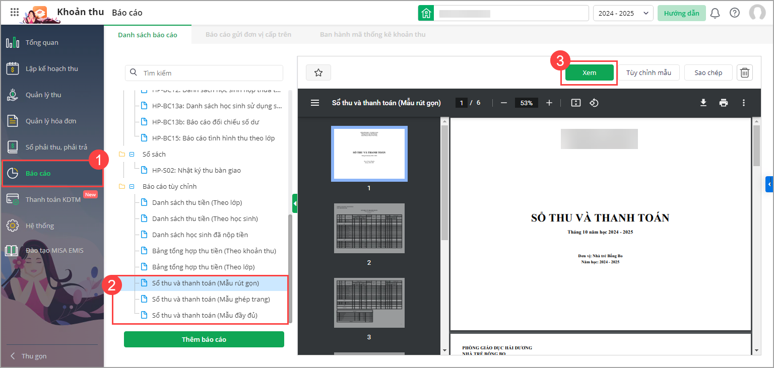 Kế toán mong muốn báo cáo Sổ thu và thanh toán có thể rút gọn để phù hợp với nhu cầu sử dụng