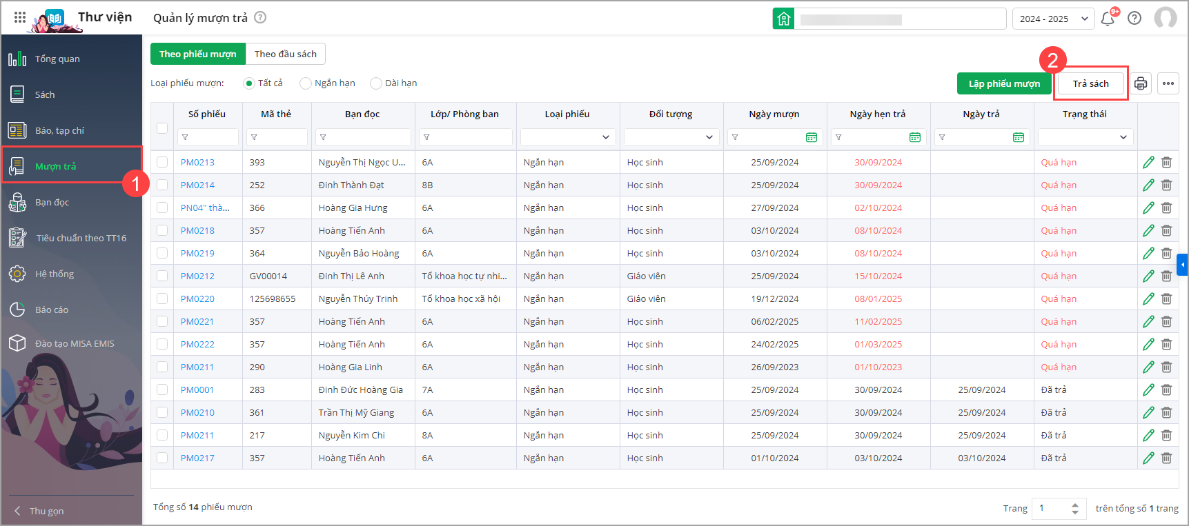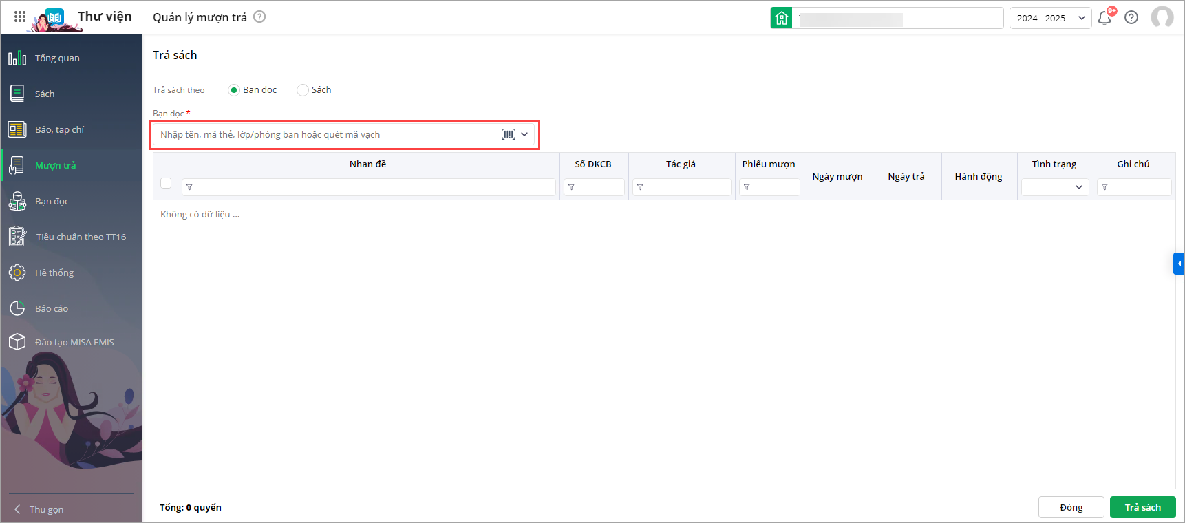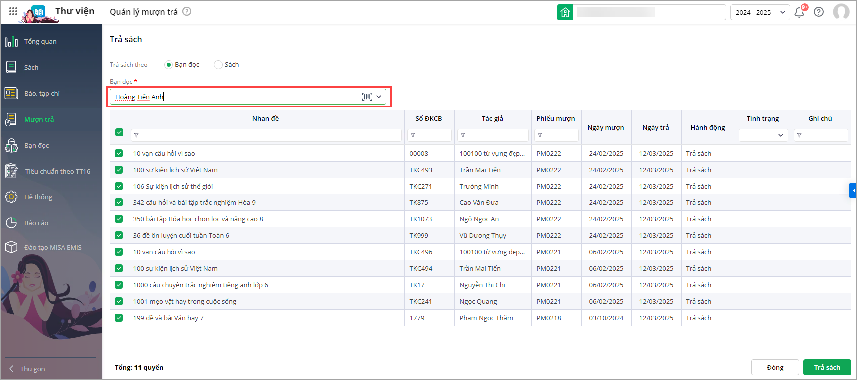 Cán bộ thư viện có thể ghi nhận trả sách theo bạn đọc nhanh chóng để tiết kiệm thời gian và tránh sai sót