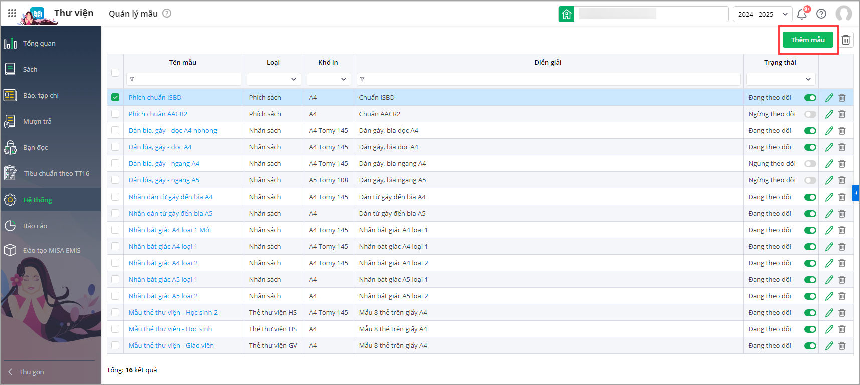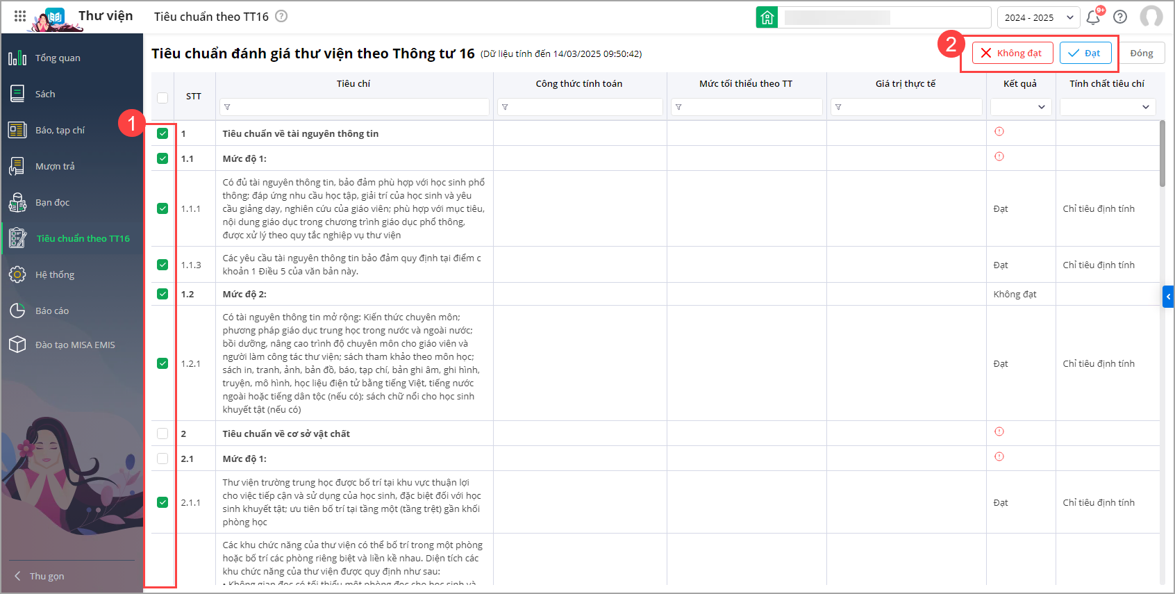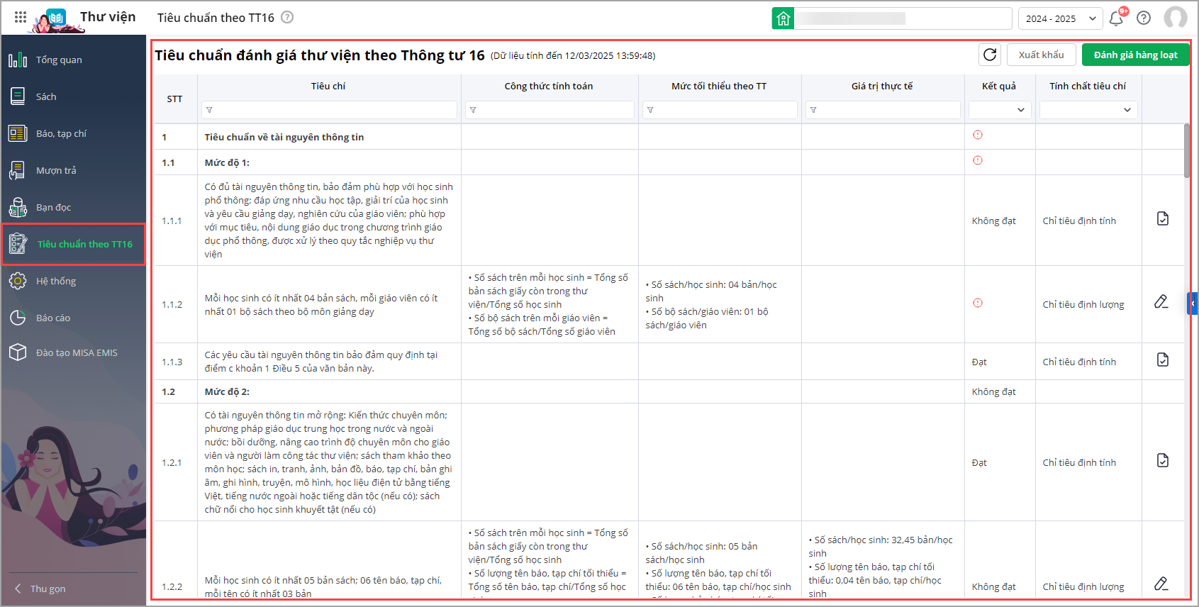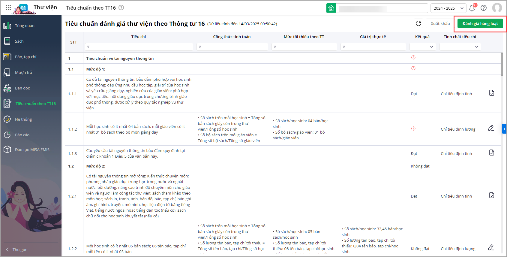 Bổ sung menu Tiêu chuẩn theo TT16 phần mềm tổng hợp dữ liệu để làm báo cáo tự đánh giá hoạt động thư viện mà không phải thu thập, tính toán số liệu thủ công