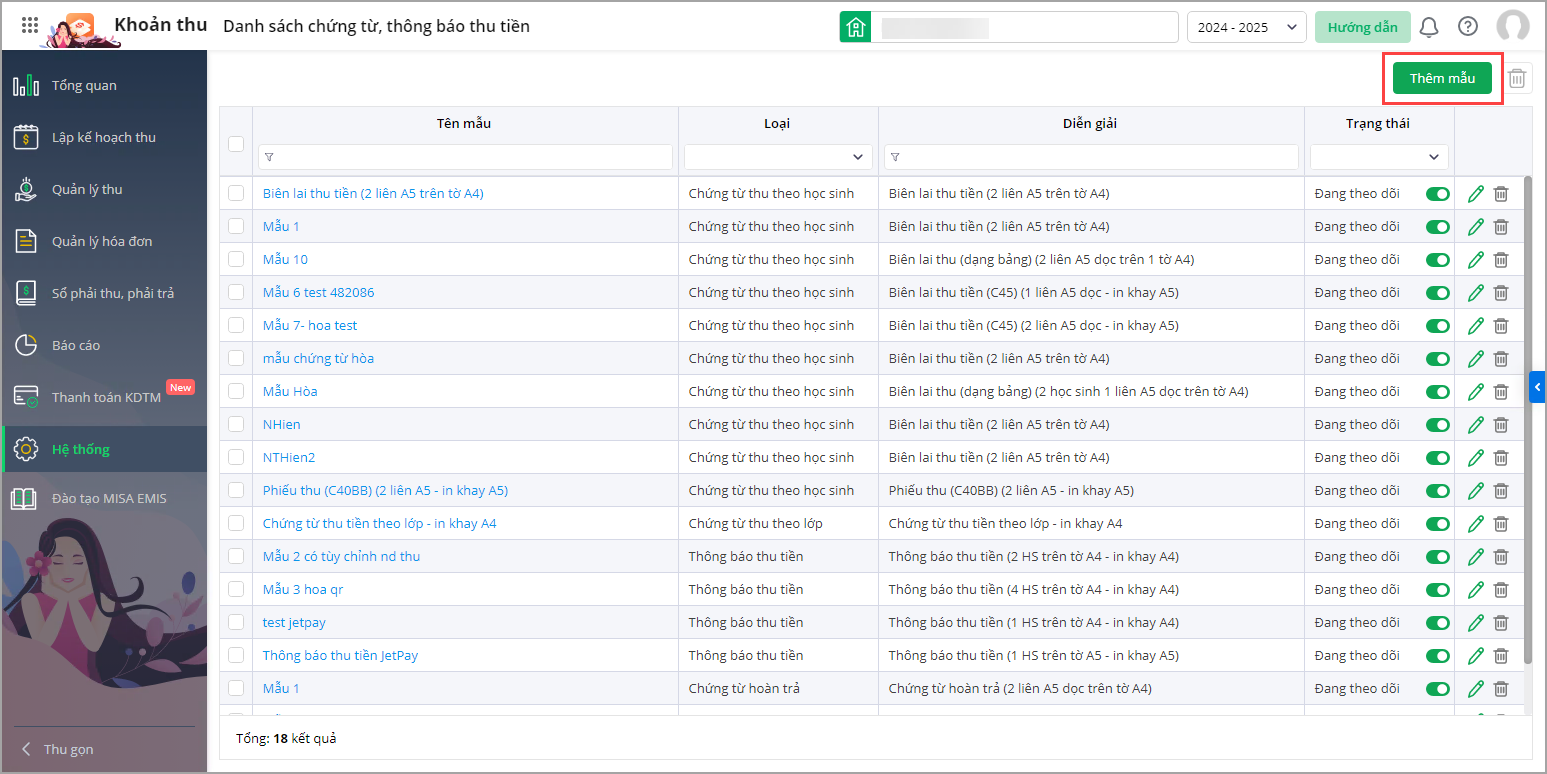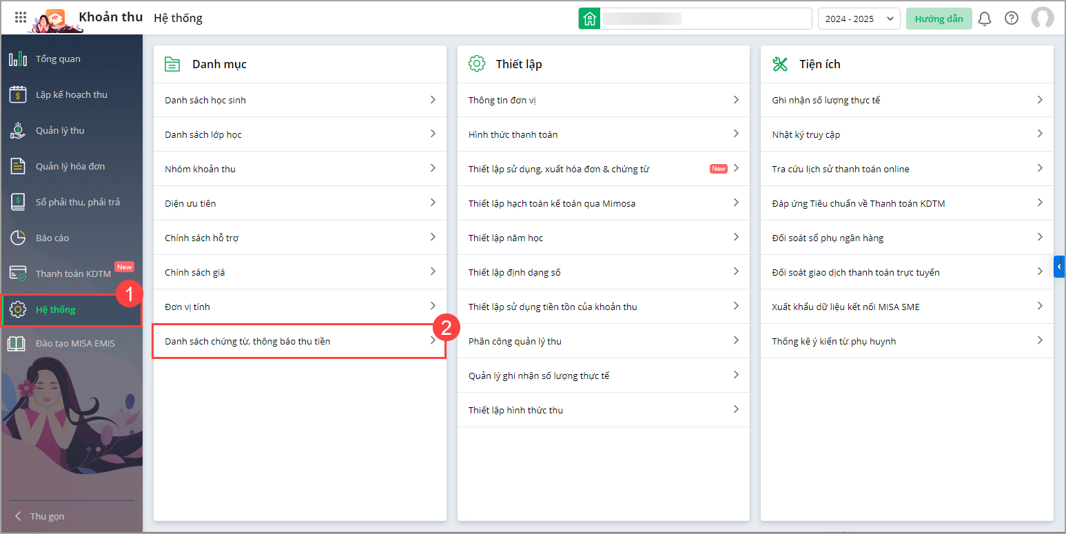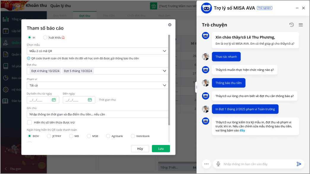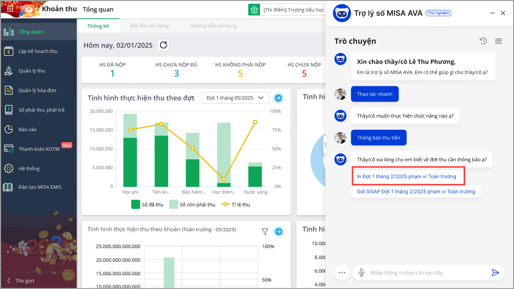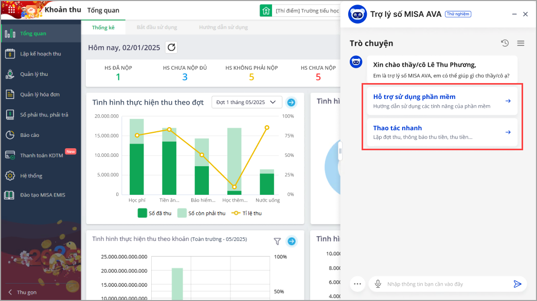 7. Tích hợp trợ lý số MISA AVA trên EMIS Khoản thu
