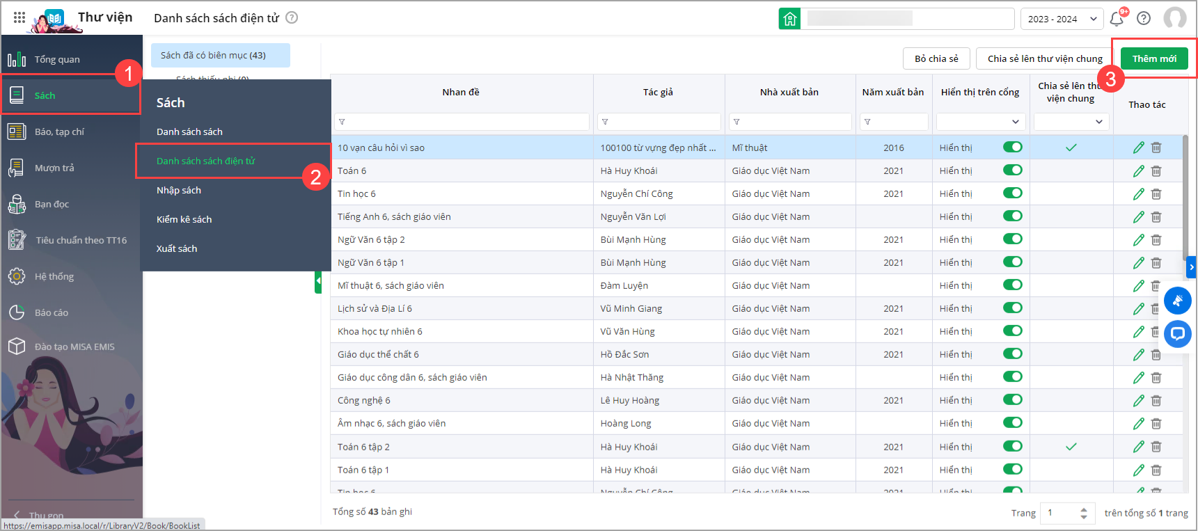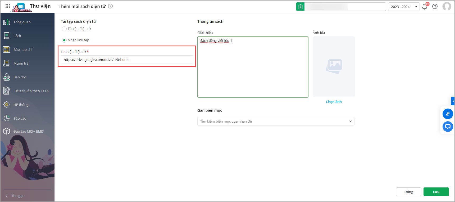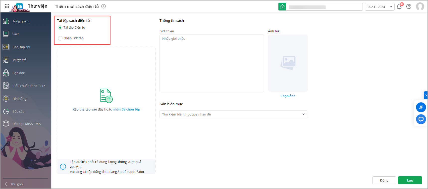 Tại menu Sách\Danh sách sách điện tử\Thêm mới
