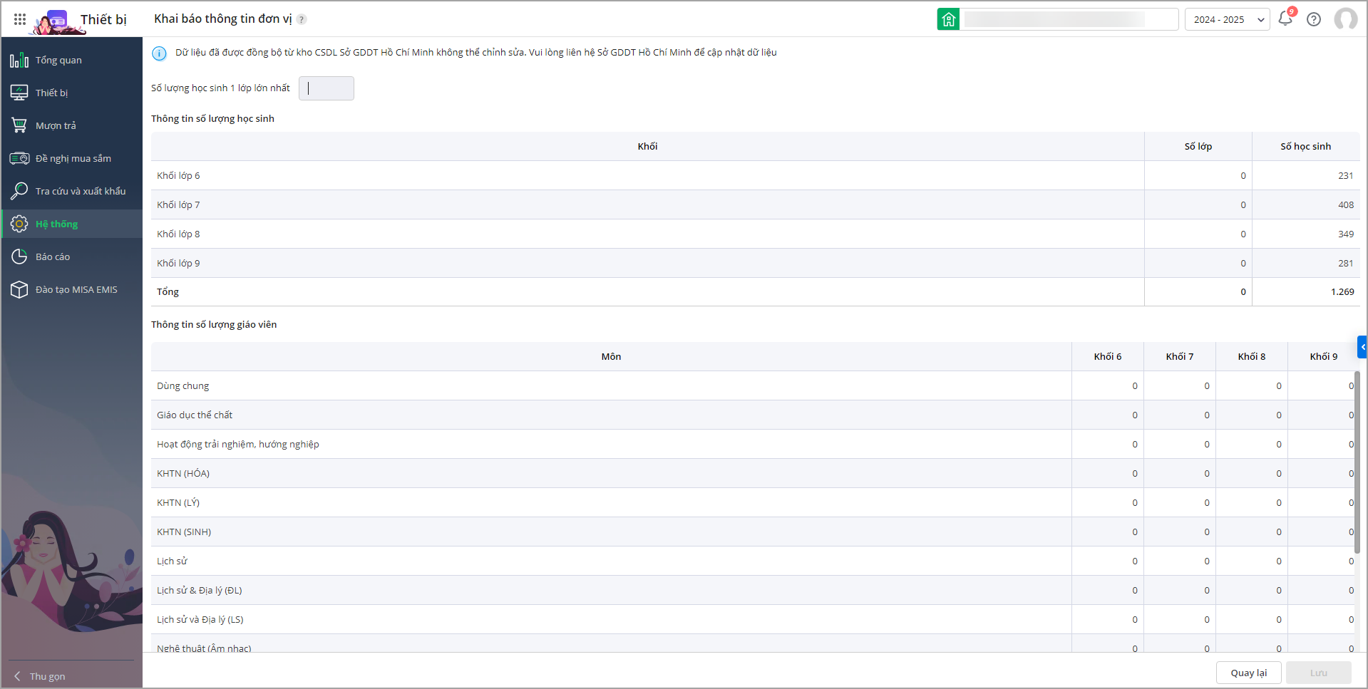 Phần mềm sẽ đồng bộ dữ liệu thiết bị từ cơ sở dữ liệu (CSDL) Hồ Chí Minh về EMIS Thiết bị cho các đơn vị