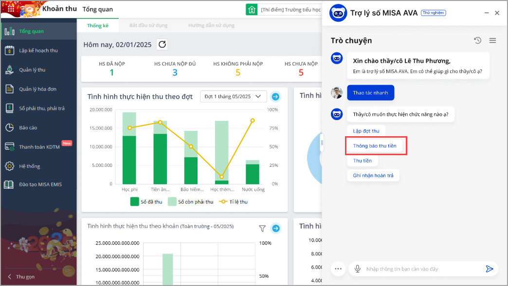 7. Tích hợp trợ lý số MISA AVA trên EMIS Khoản thu