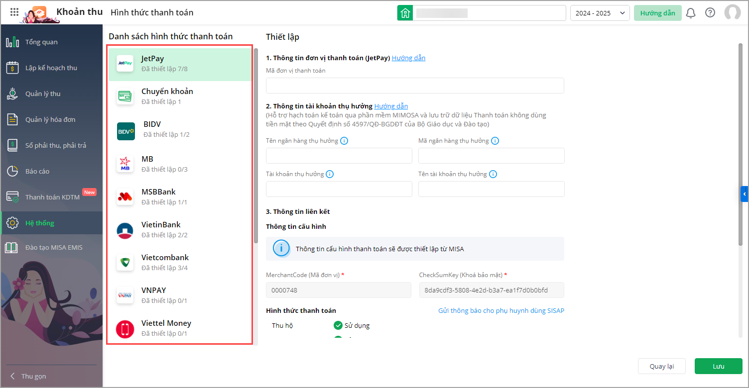 Tại đơn vị, khi có nhiều học sinh thanh toán bằng tiền mặt hoặc chuyển khoản vào tài khoản của nhà trường, kế toán sẽ xác nhận thủ công.