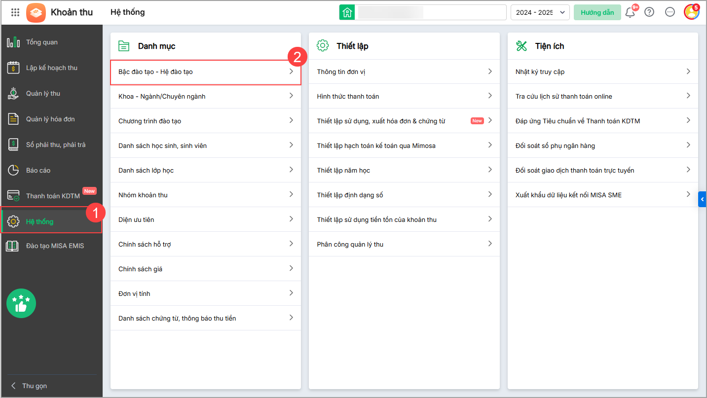 - Kiểm tra danh mục bậc – hệ đào tạo, nếu cần bổ sung anh/chị thực hiện các bước dưới đây: