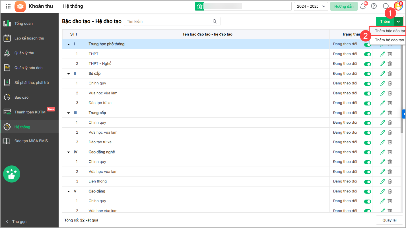 I. Thêm Bậc Đào tạo – Hệ đào tạo