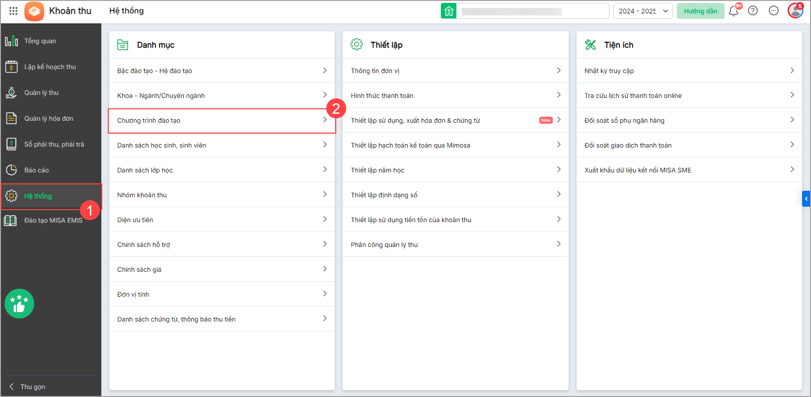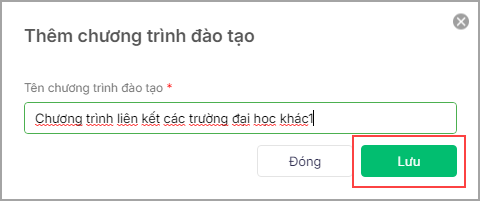 - Hệ thông mang đi sẵn các hệ đào tạo theo quy định của Bộ giáo dục, Chọn Thêm để khai báo thông tin chương trình đào tạo hiện tại đang áp dụng tại đơn vị