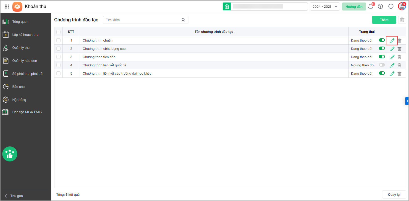 - Hệ thông mang đi sẵn các hệ đào tạo theo quy định của Bộ giáo dục, Chọn Thêm để khai báo thông tin chương trình đào tạo hiện tại đang áp dụng tại đơn vị