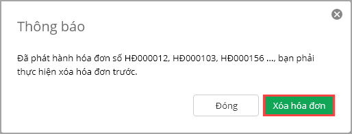 - Nhấn Xóa hóa đơn để chuyển sang màn hình xóa hóa đơn đã phát hành. (Xem hướng dẫn xóa hóa đơn tại đây)