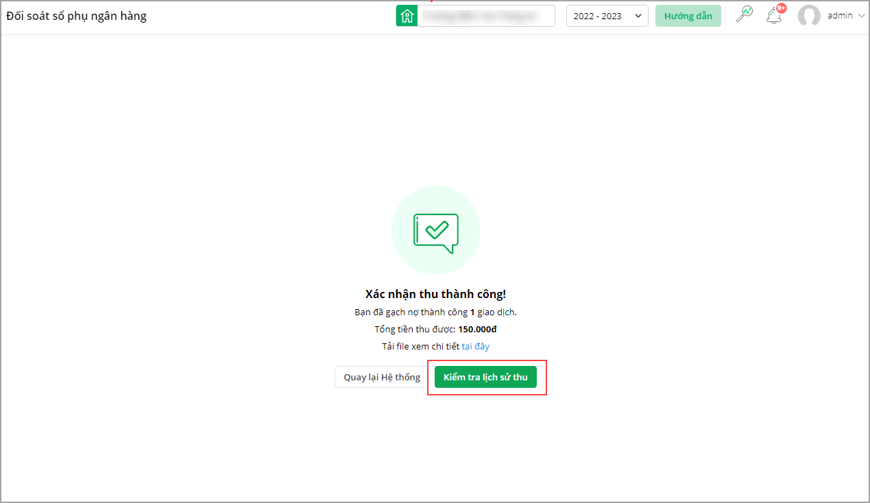 5. Nhấn Kiểm tra đợt thu để kiểm tra thông tin đợt thu sau khi đã xác nhận thu.