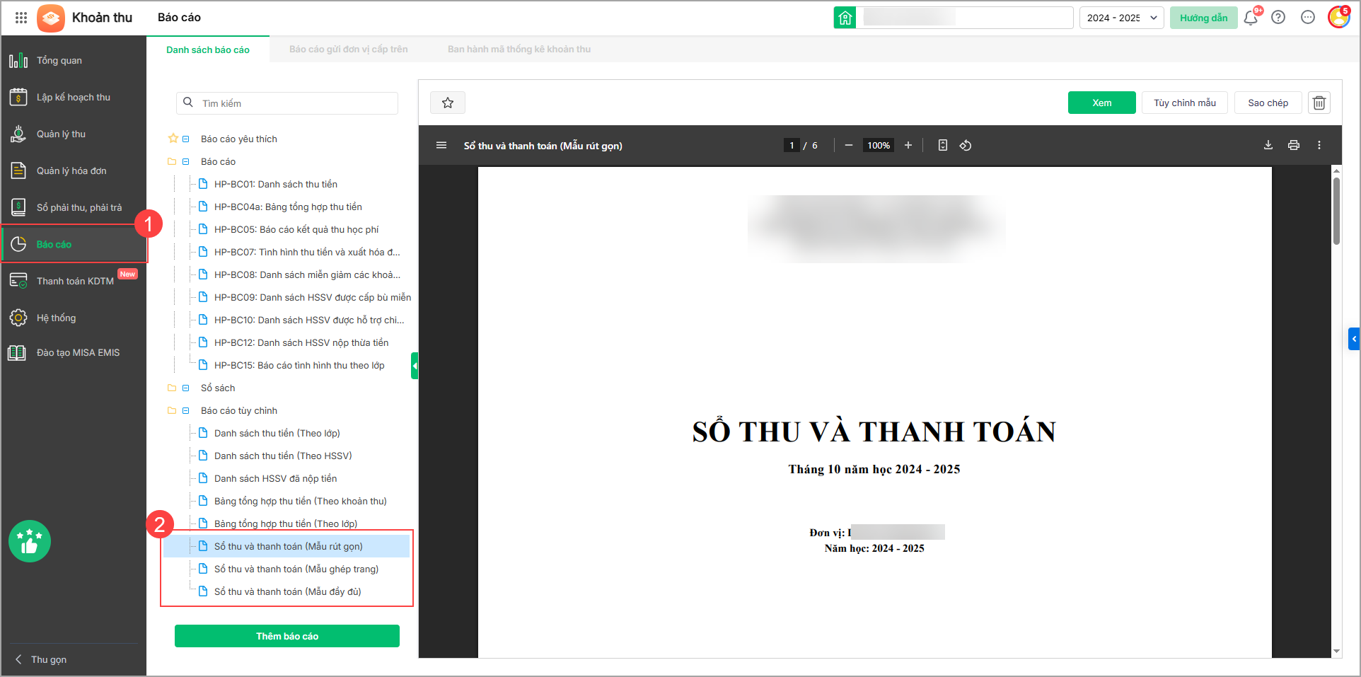Giúp anh/chị dễ dàng tùy chỉnh báo cáo Sổ thu và thanh toán theo đúng mẫu của đơn vị.