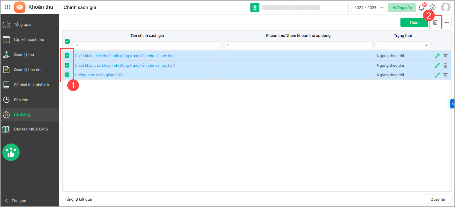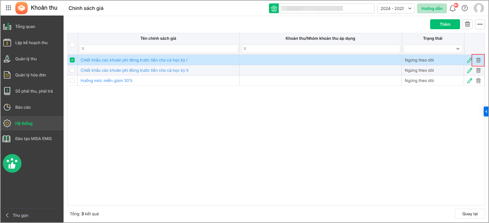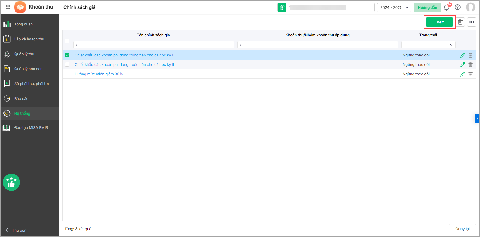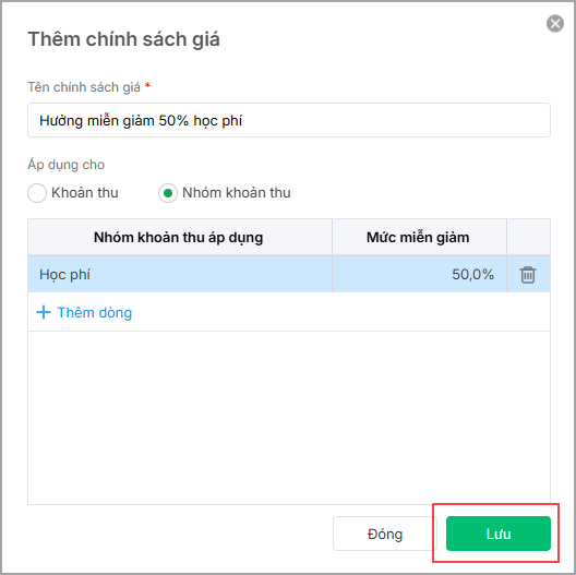 - Nhấn Thêm để thêm chính sách giá có phát sinh tại trường.