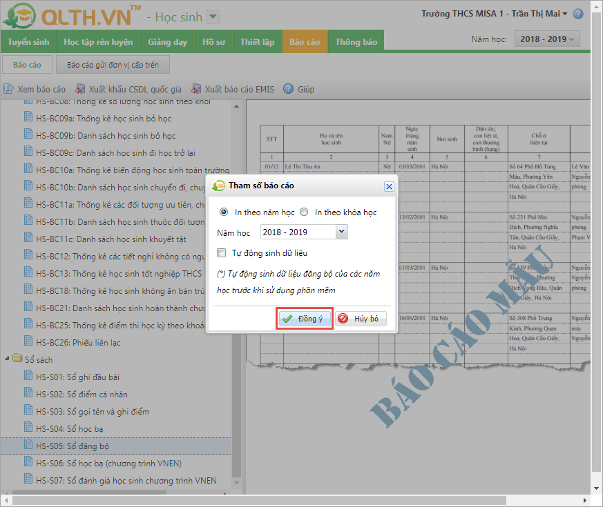 4. Nhấn Đồng ý và kiểm tra số liệu trên báo cáo