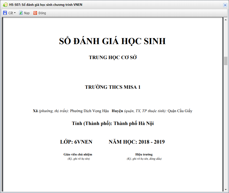 Giúp giáo viên có thể nhanh chóng in được sổ đánh giá học sinh theo chương trình VNEN