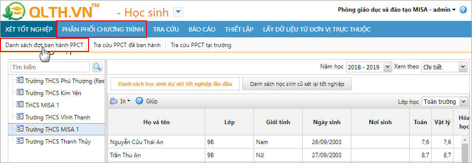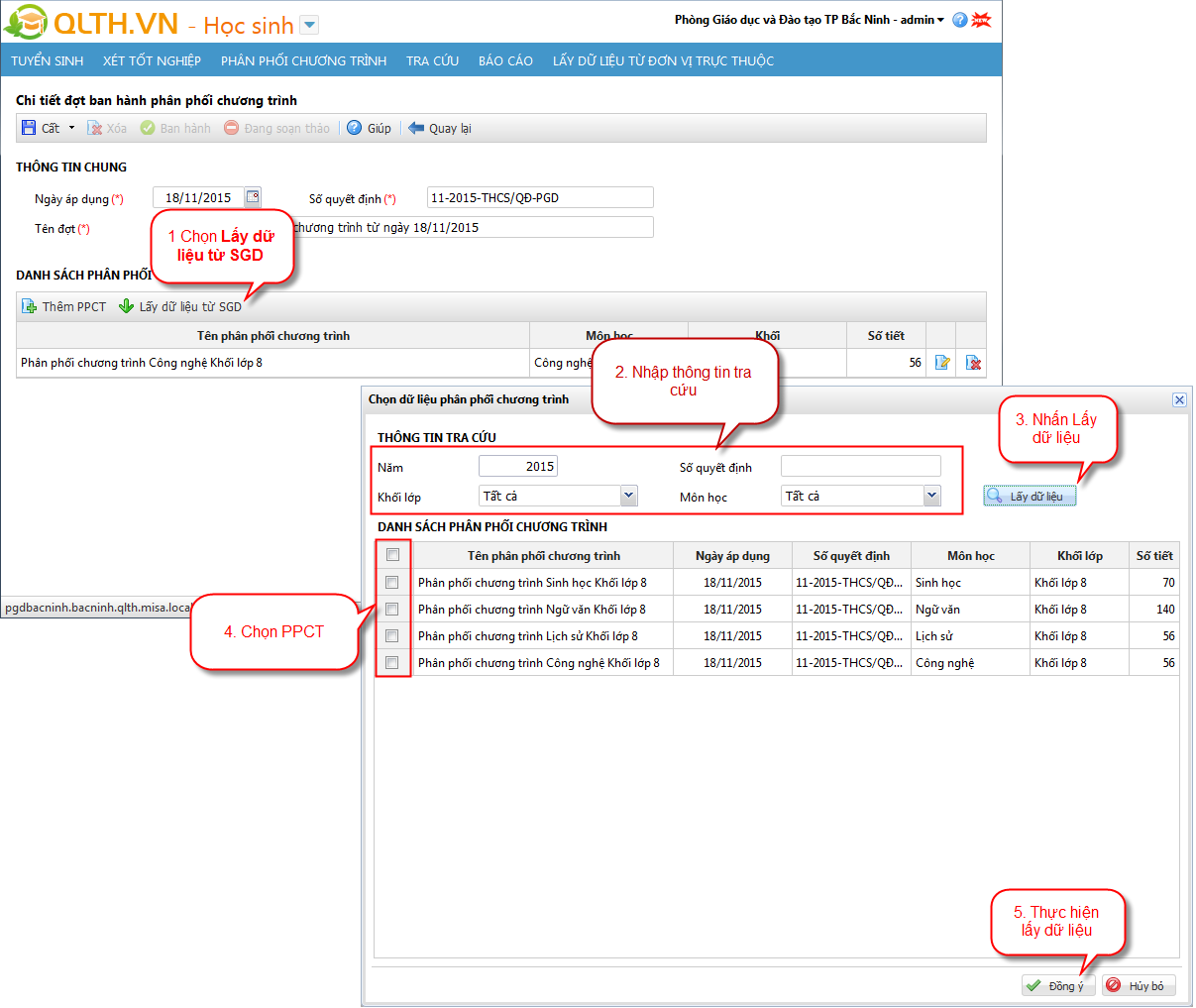 - Lấy dữ liệu phân phối chương trình từ Sở Giáo dục.