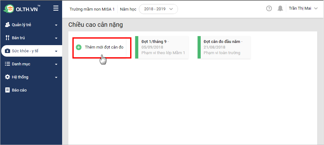 2.1 Thêm mới đợt đo cân nặng, chiều cao