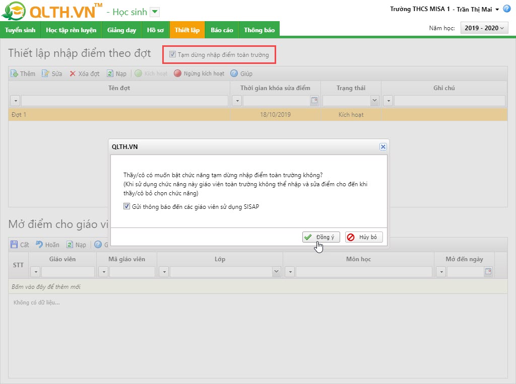 Khi hết đợt nhập điểm thì tạm thời giáo viên không thể thực hiện nhập điểm tiếp để ban giám hiệu có thể hoàn thành kết quả tổng kết