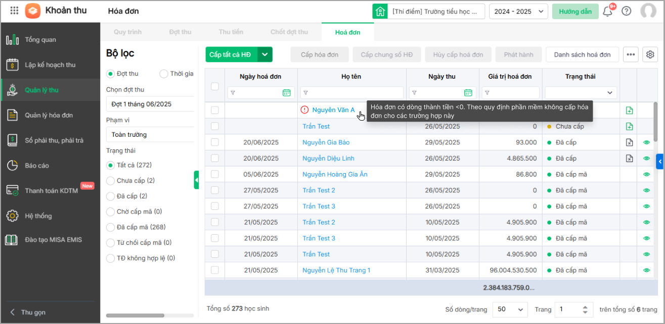 Phần mềm sẽ cảnh báo và không cho phép xuất hóa đơn có dòng thành tiền âm để tránh sai sót và nguy cơ bị xử phạt.
