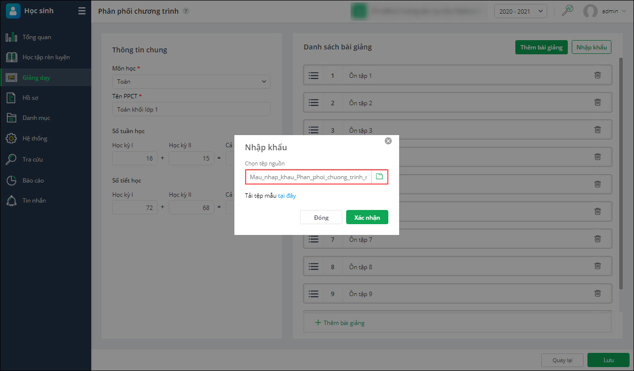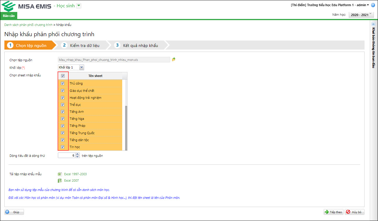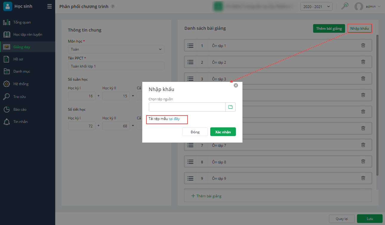 - Tải tệp mẫu nhập khẩu phân phối chương trình do phần mềm cung cấp.