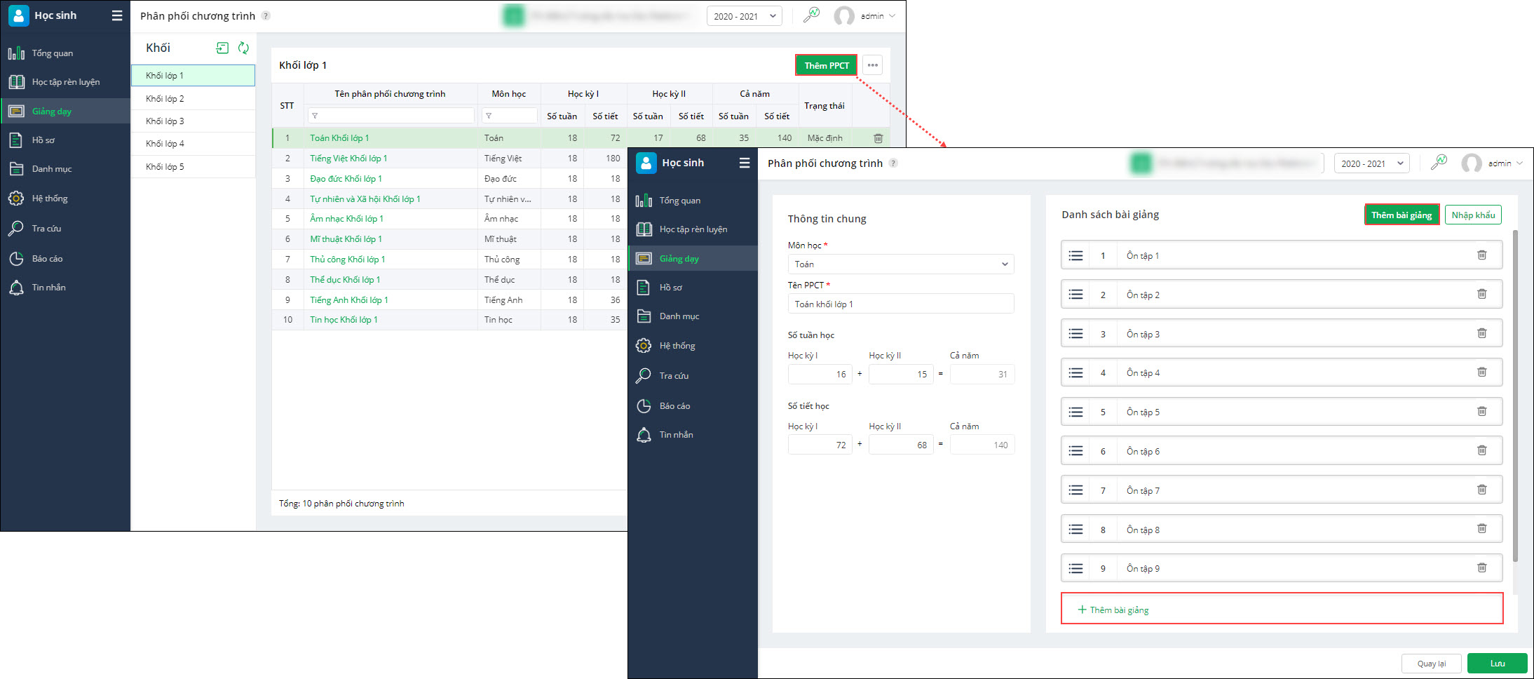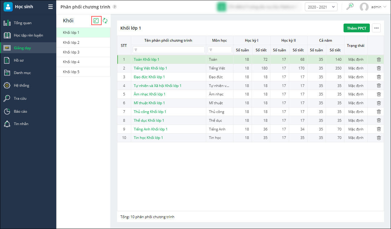Nhấn vào đây để sử dụng tính năng Cập nhật phân phối chương trình của Phòng/Sở Giáo dục, giúp đồng bộ Phân phối chương trình từ PGD/SGD.