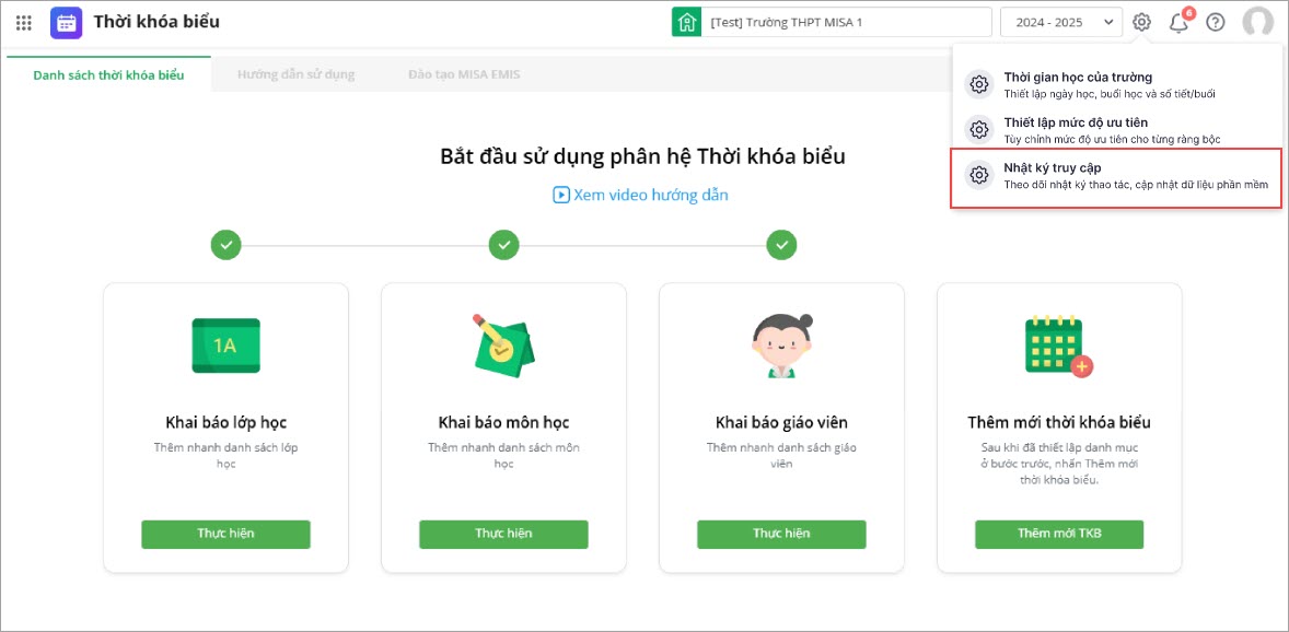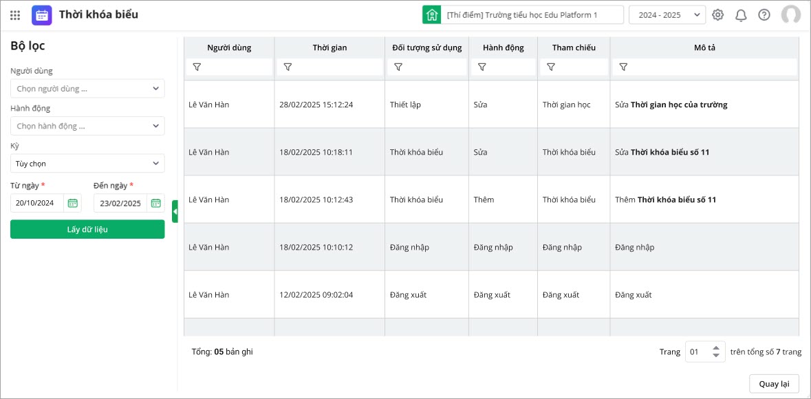 3. Nhật ký truy cập (Phân hệ Thời khóa biểu)